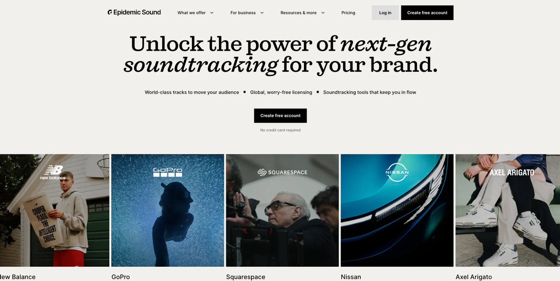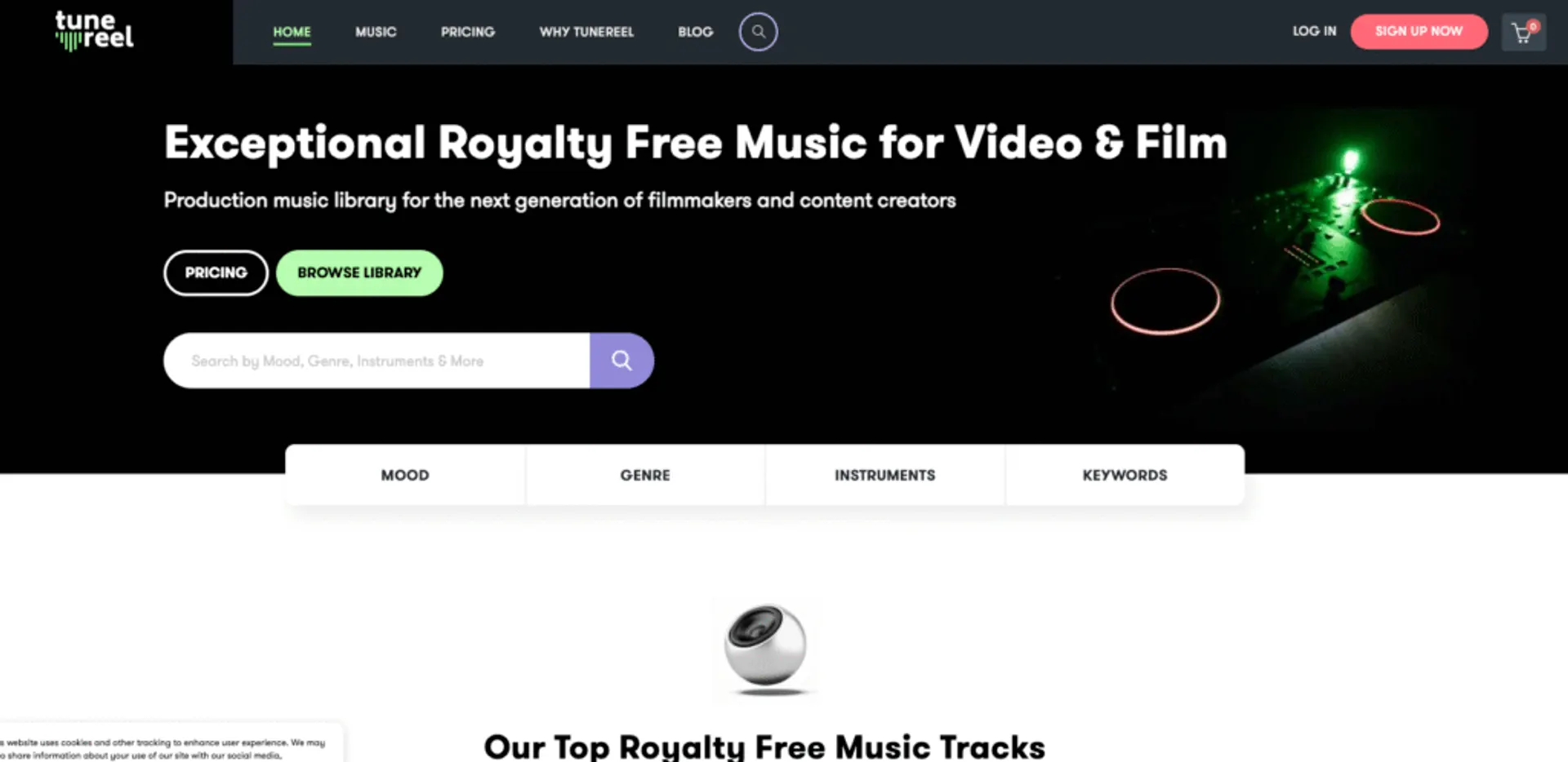 Massive, high-quality library across genres, with powerful filters for mood, theme, and sound type.