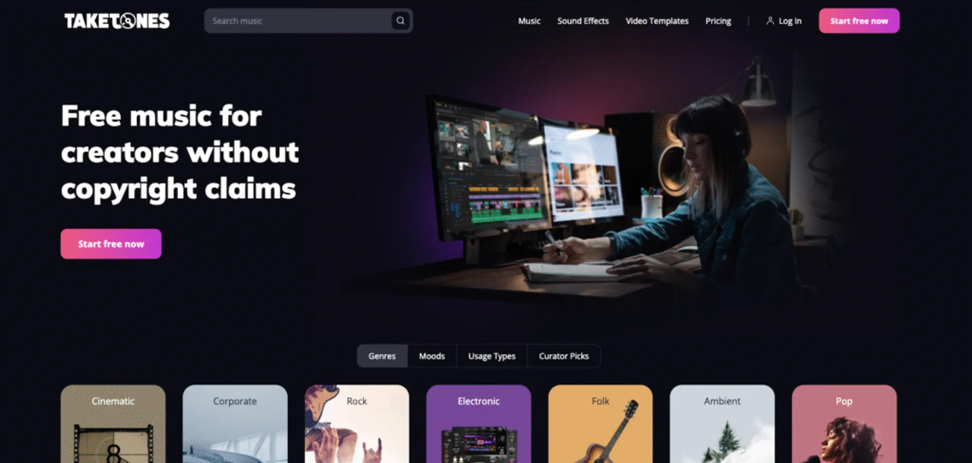 TakeTones delivers a curated selection of royalty-free background music composed by professional musicians for video creators and marketing professionals.