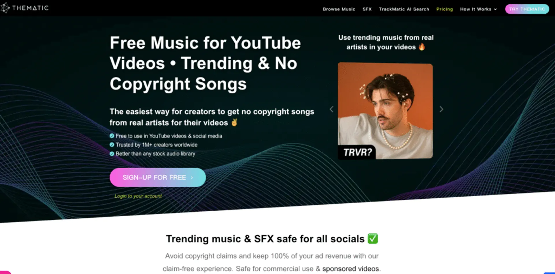 Thematic is a creator-focused music licensing platform offering trending and copyright-safe tracks for social media, with a free core option and premium upgrades.